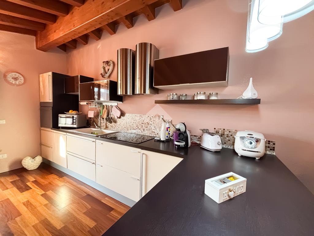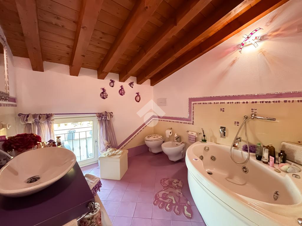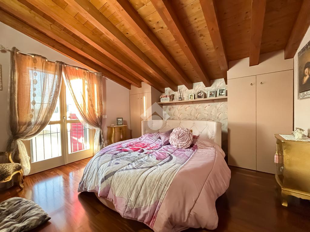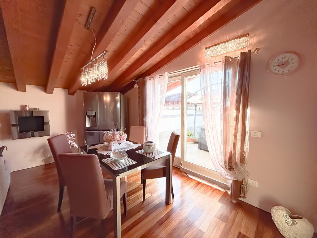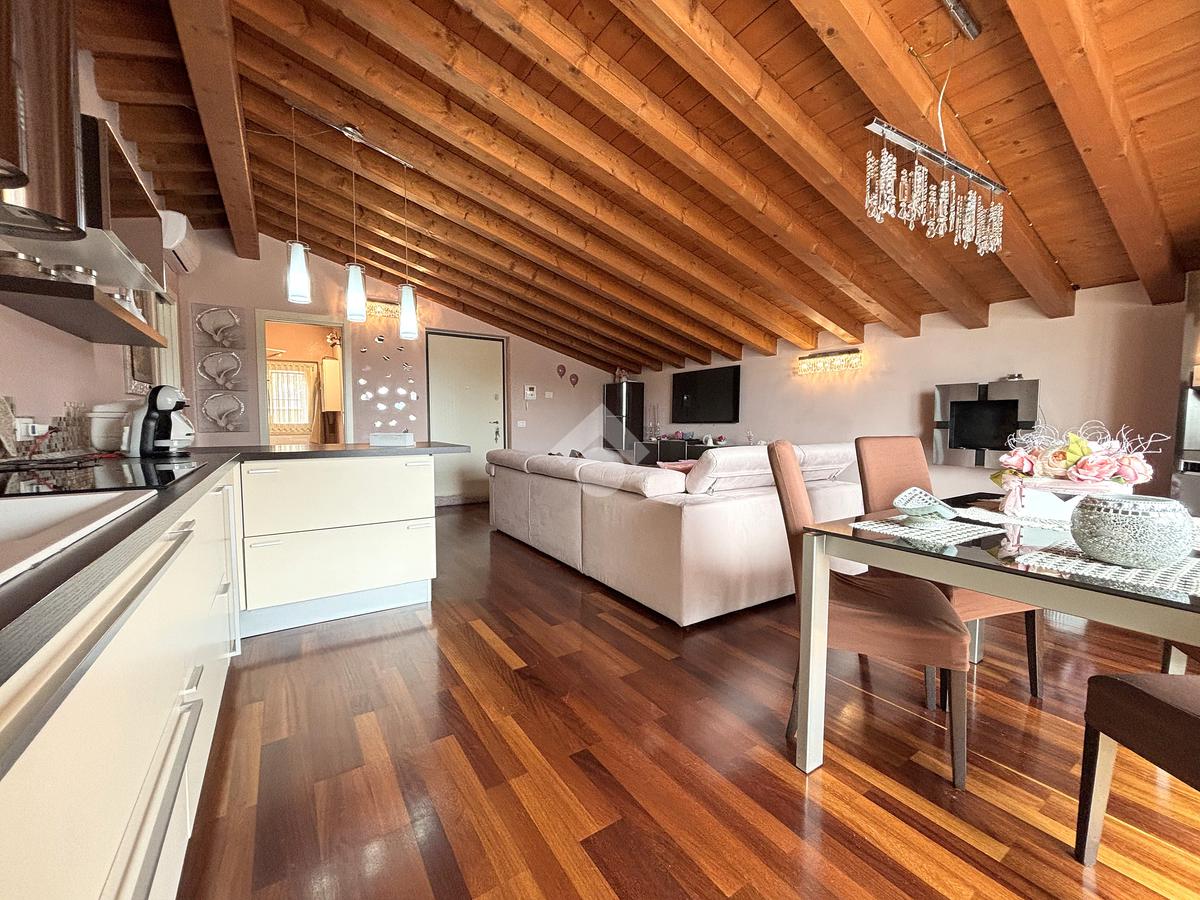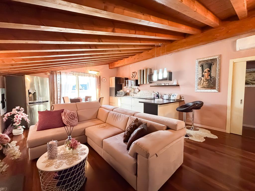 Le finiture di pregio, le travi a vista in legno e la pavimentazione in parquet, rendono l’ambiente elegante ed accogliente, nonché perfettamente adatto al contesto signorile in cui la suddetta soluzione è inserita.