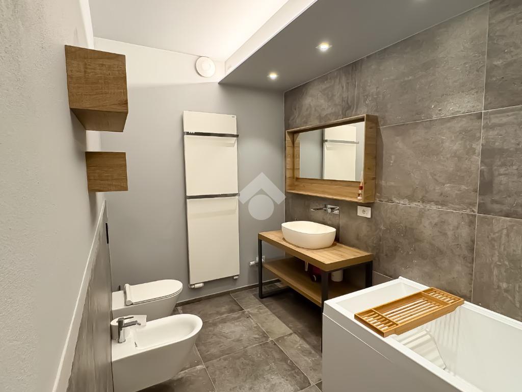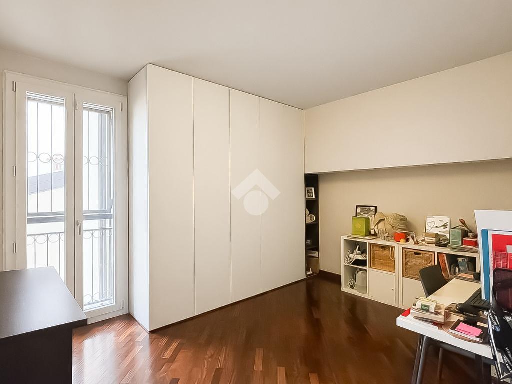 Dal disimpegno si accede al bagno di servizio dotato di vasca e alla scala che conduce alla zona notte, composta da due camere da letto, di cui una matrimoniale, oltre a un ulteriore locale attualmente adibito a cabina armadio che, in base alle esigenze, può essere facilmente utilizzato anche come terza camera singola o studio.