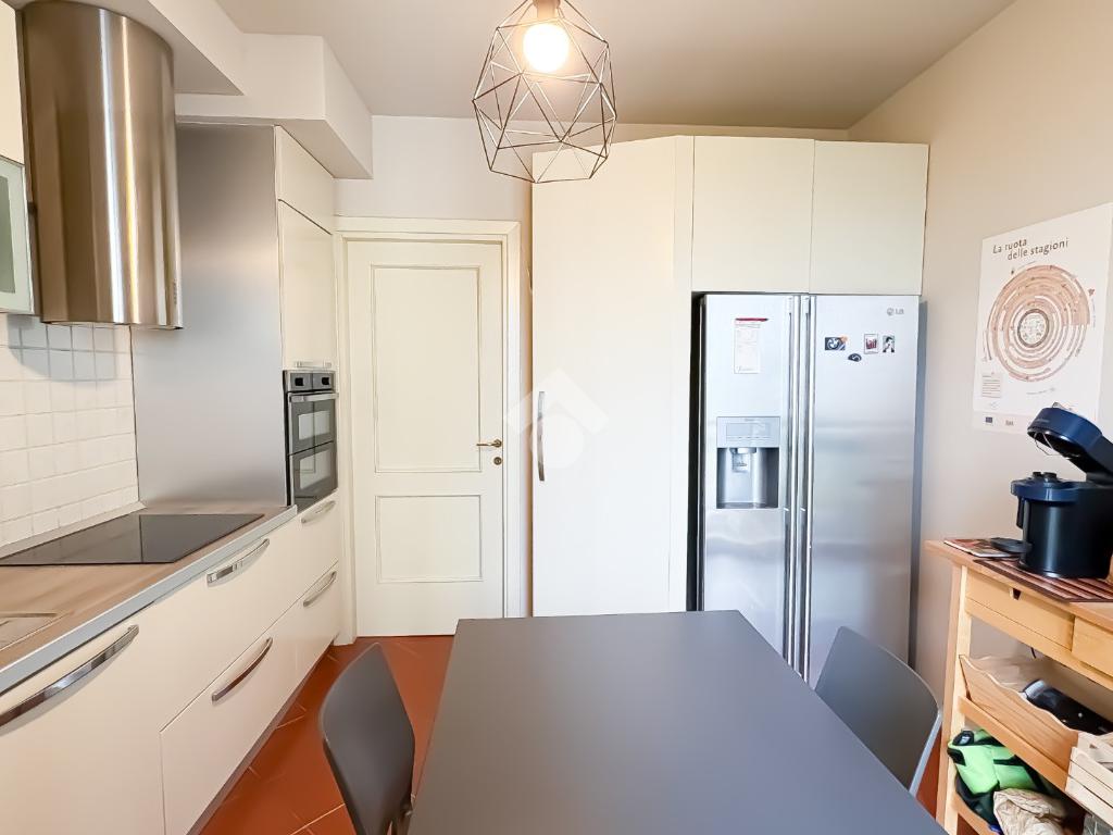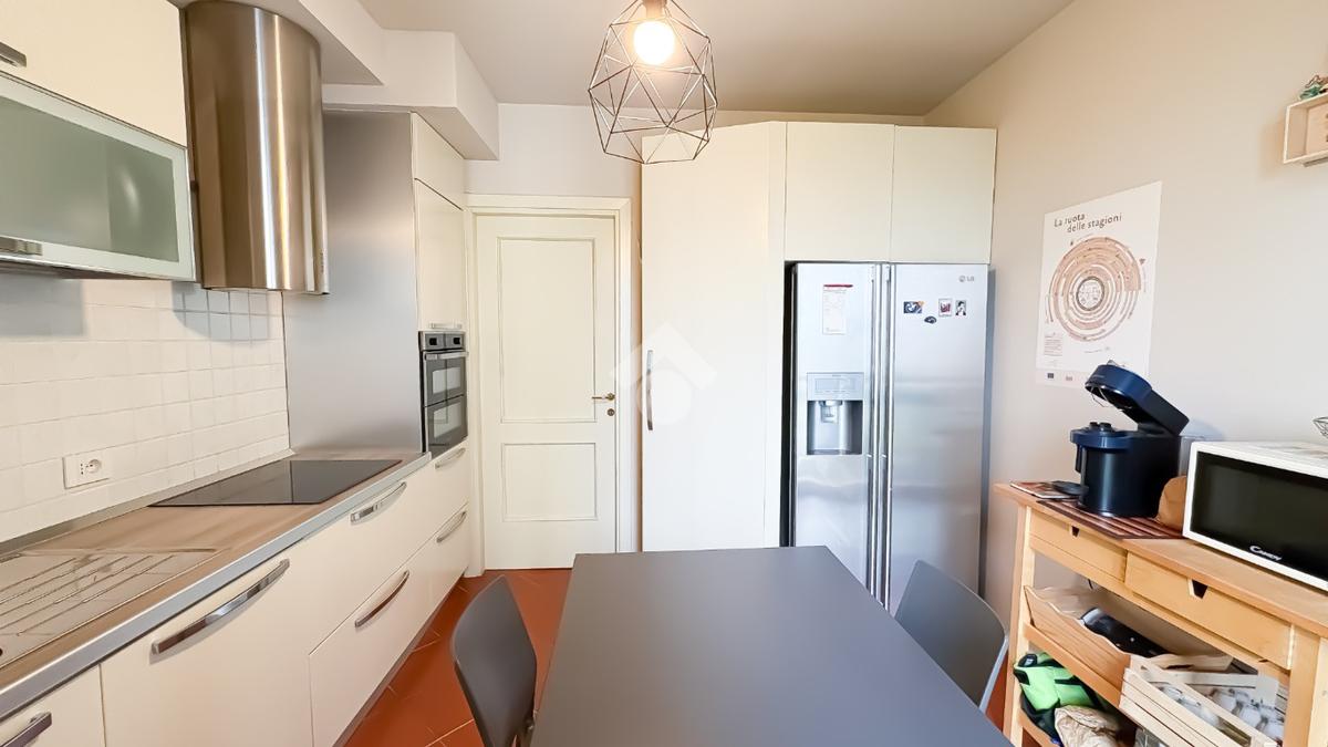 L’ingresso introduce direttamente alla zona giorno, caratterizzata da ambienti luminosi grazie alle ampie finestrature che garantiscono una buona luminosità ai locali. La zona living conduce alla cucina abitabile separata.